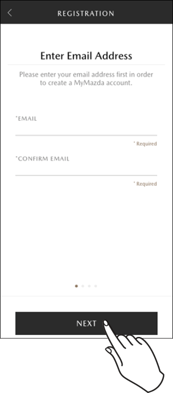 Enter the email address you want the MyMazda APP to use, and then touch NEXT.