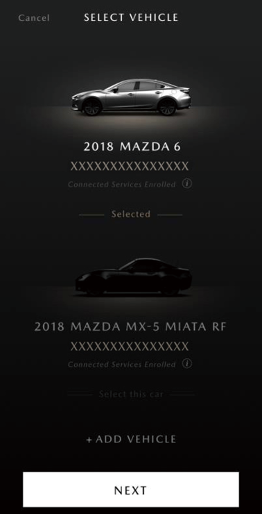 • By touching [ADD VEHICLE], you can register a vehicle that you can confirm on the MyMazda APP.